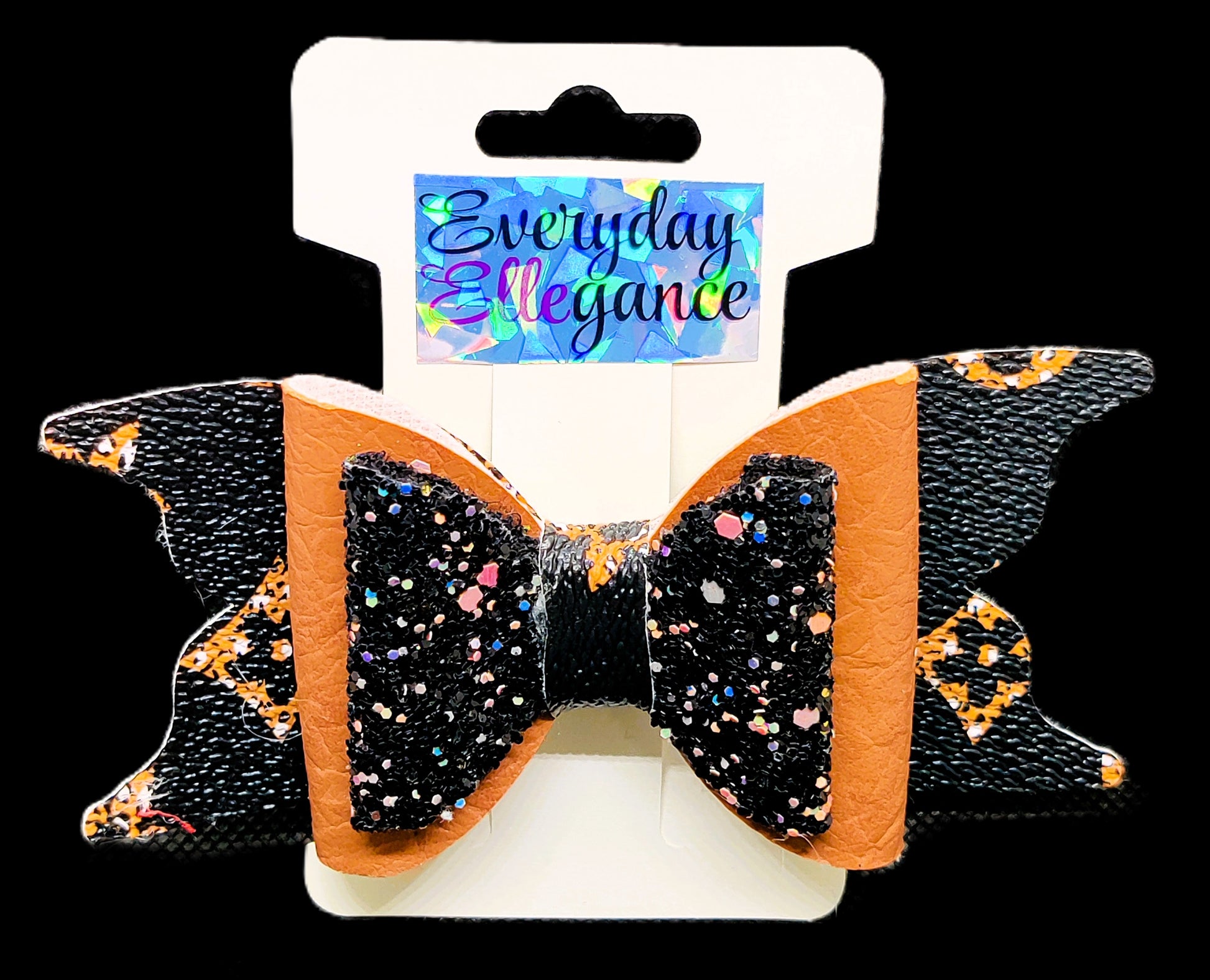 Designed and handcrafted by Elle, this unique bow is made from faux leather and secured with a silver French barrette.