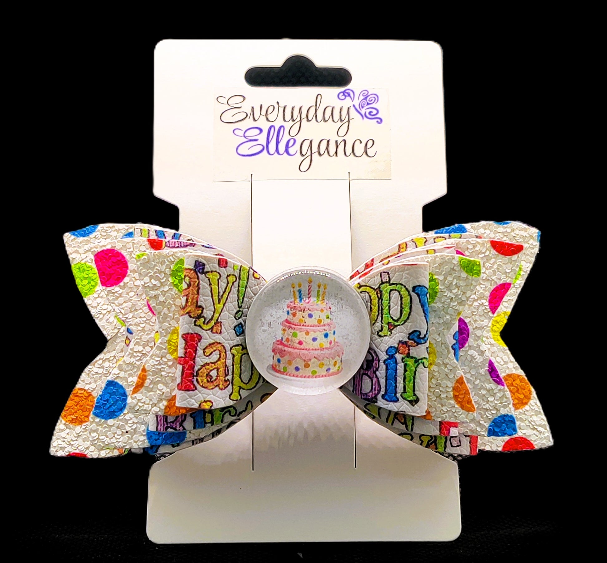 Glitter Polka Dot Birthday Bow with a Birthday Cake Cabochon Accent
