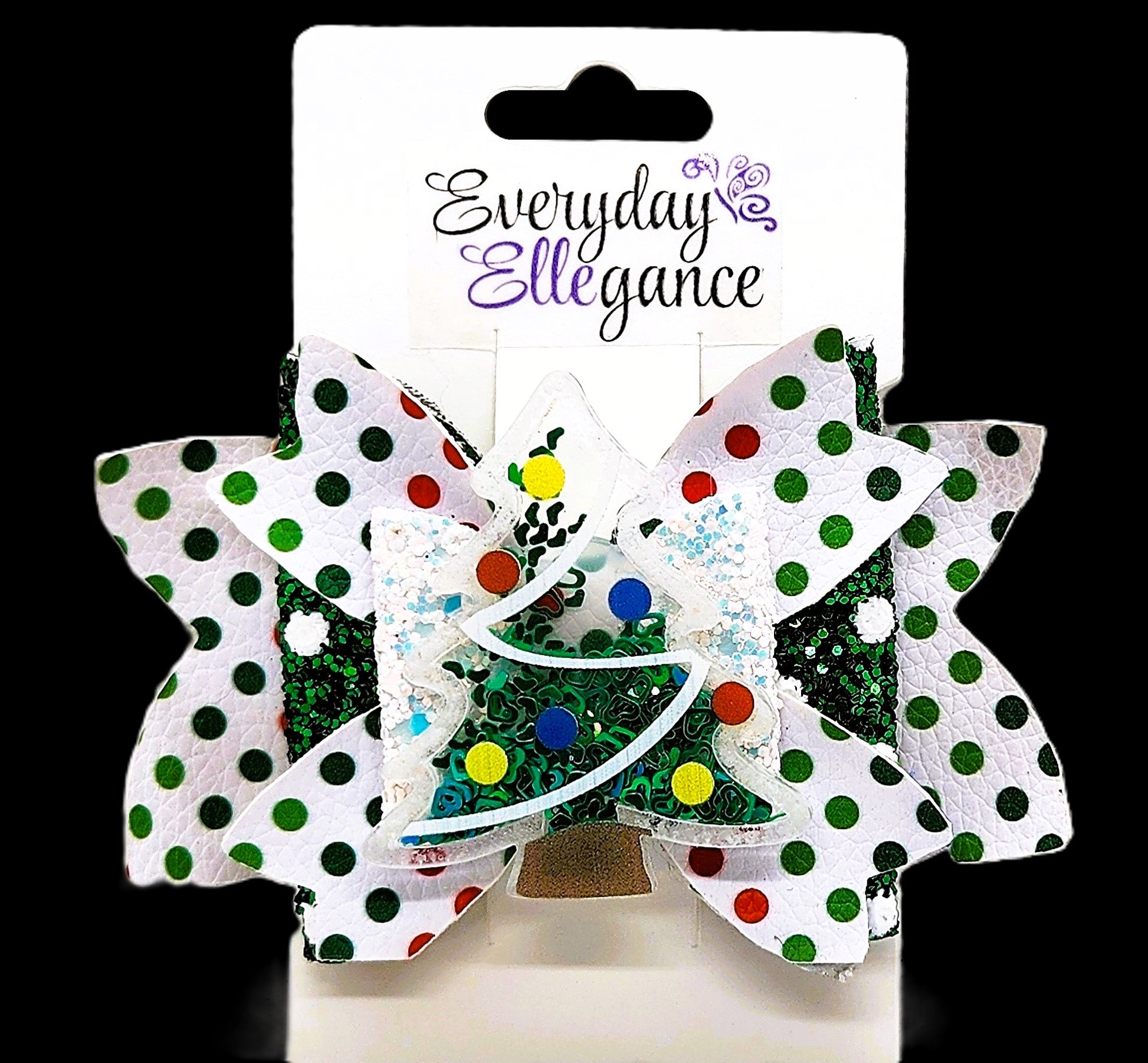 Glitter Polka Dot Bow with Christmas Tree Shaker Accent