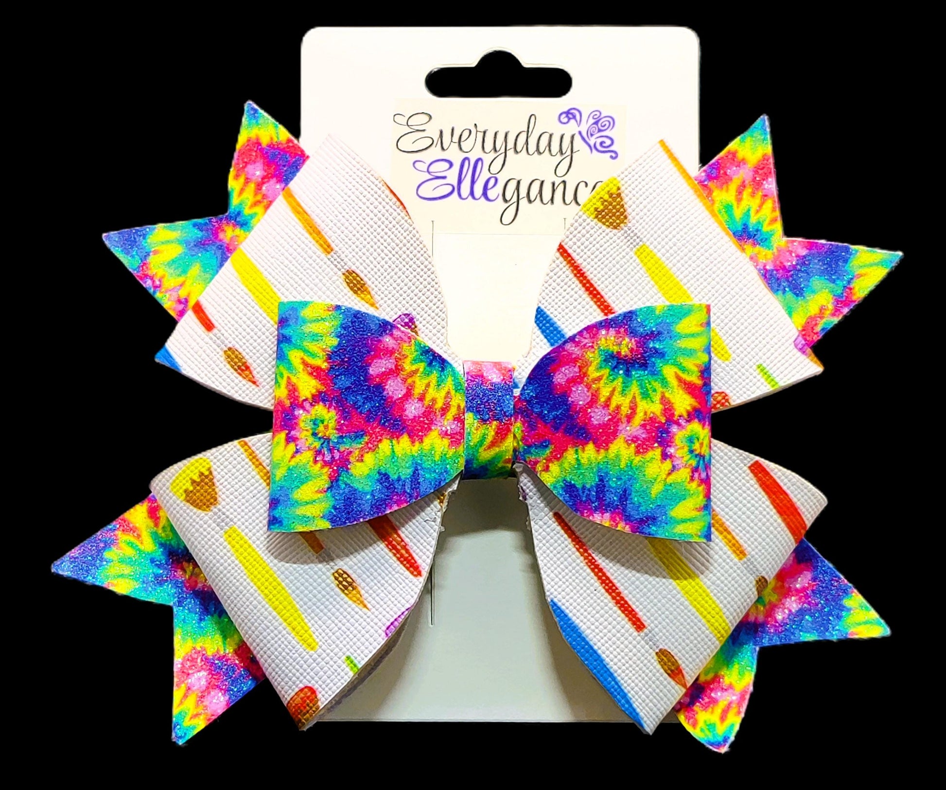 Designed and handcrafted by Elle, this unique bow is made from faux leather and secured with a silver French barrette.
