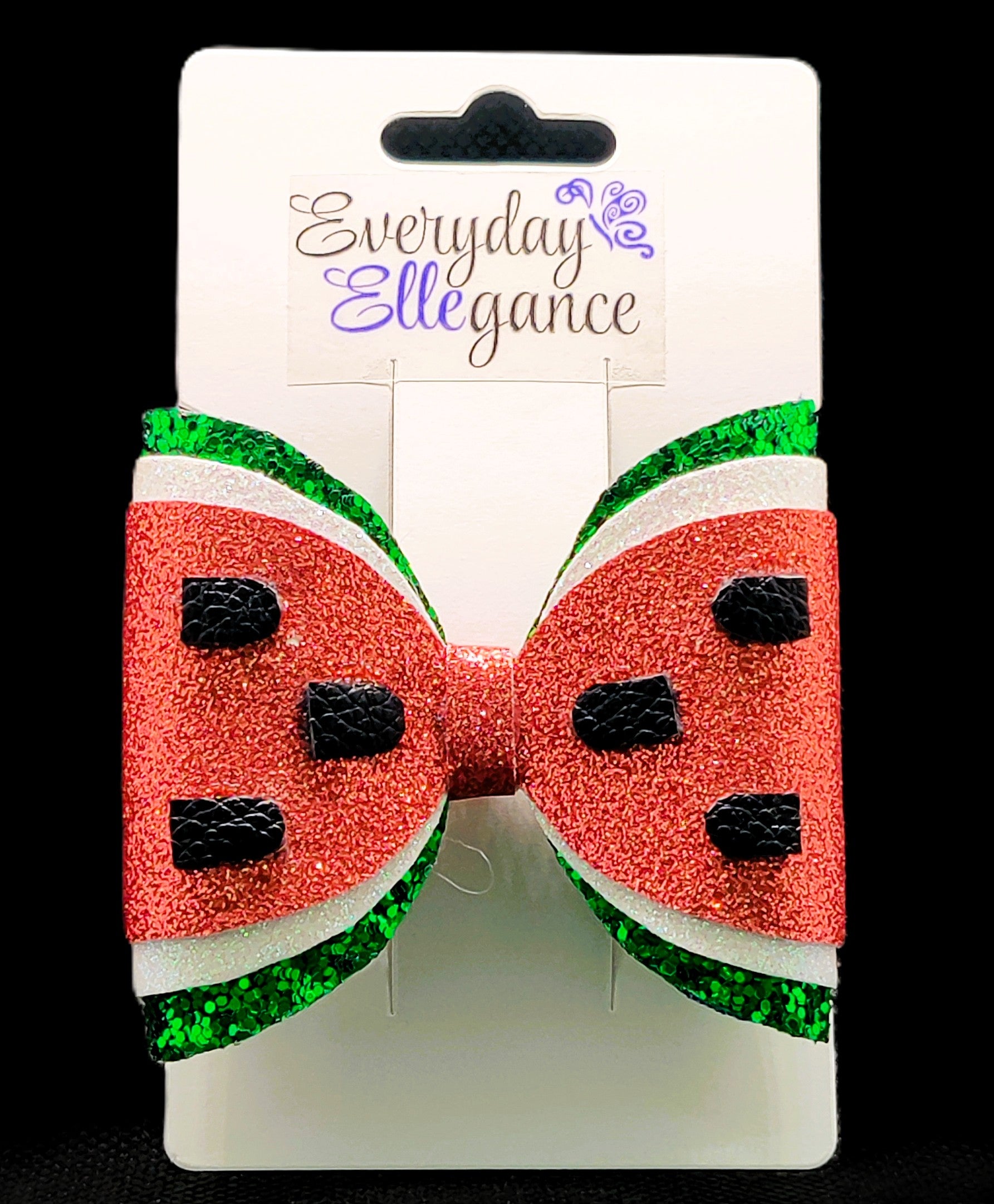 Designed and handcrafted by Elle, this unique bow is made from faux leather and secured with a Silver French barrette.