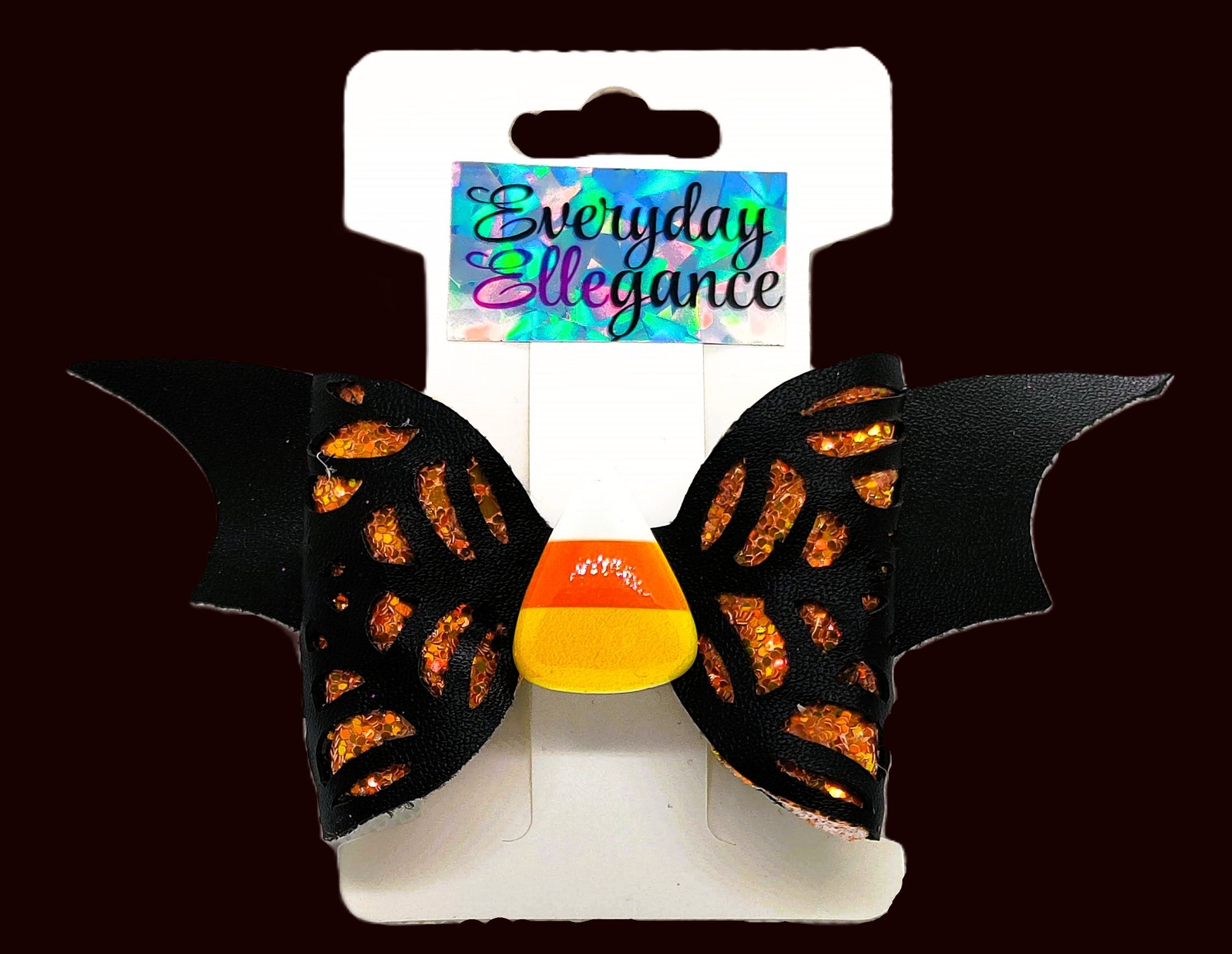Spider Web Cut-Out on Glitter Bat Wings Bow with a Candy Corn Accent