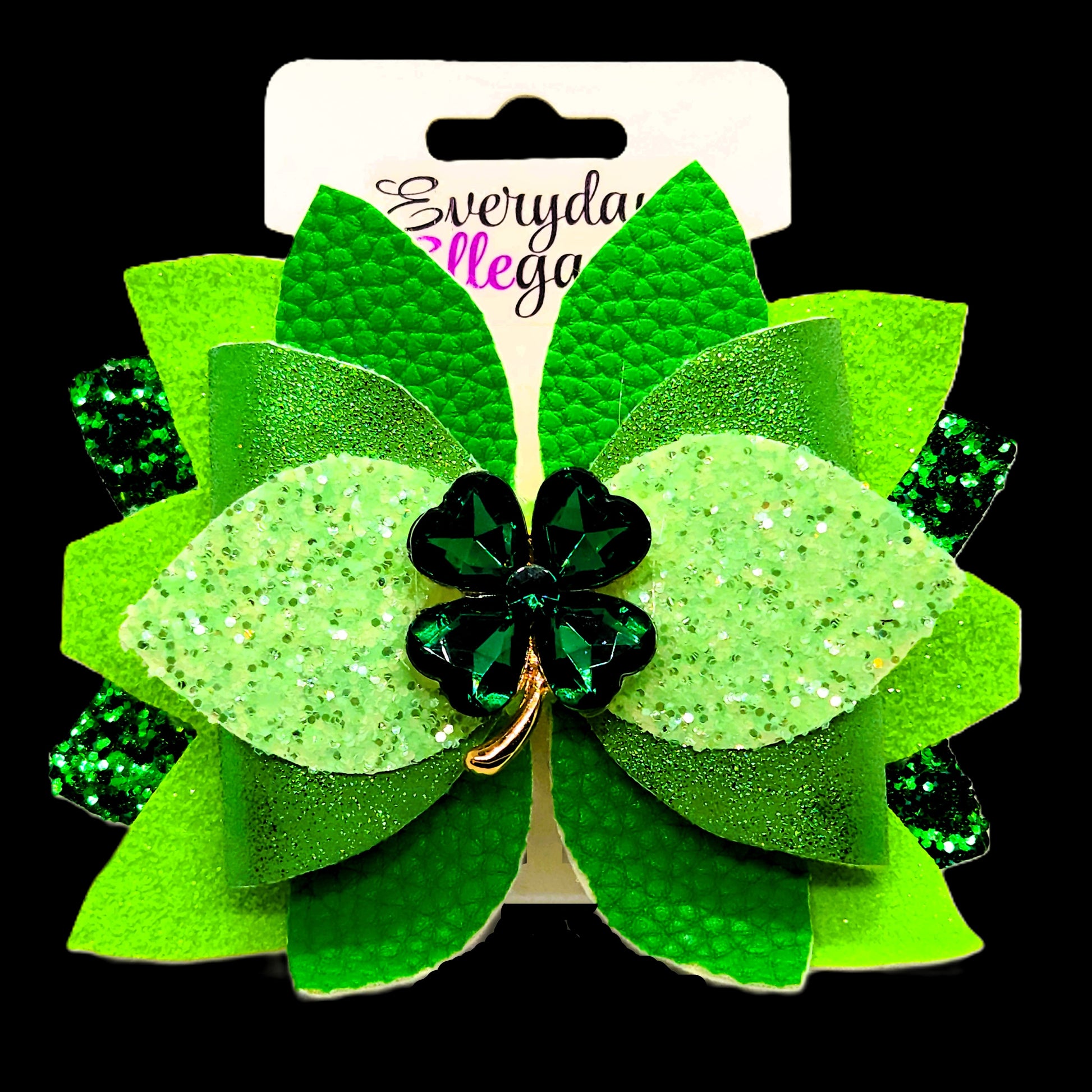 St. Patrick's Day Bloomin Glitter Bow with Green Crystal Shamrock Accent