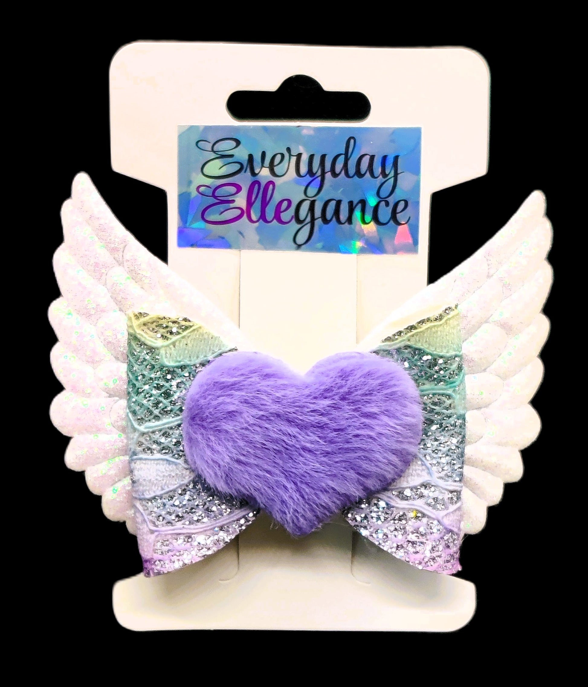 Valentine's Day Glitter Wings Bow with a Fuzzy Heart Accent